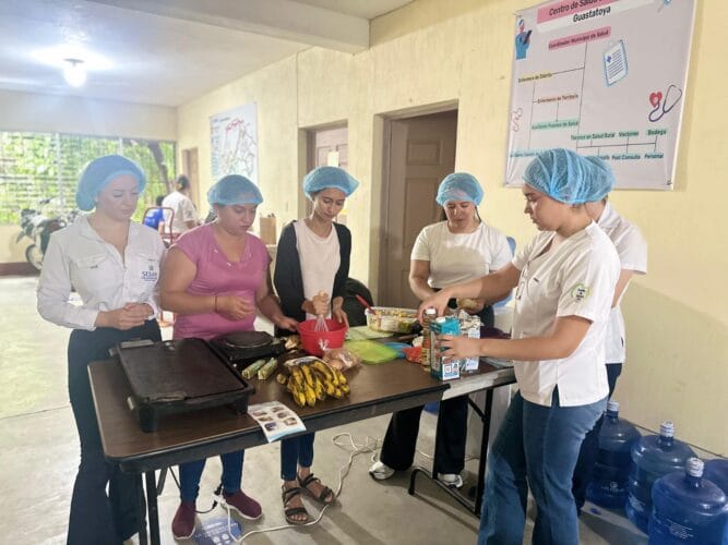 Además de las COCOSAN y en el marco de la ECCSyC para la promoción de la alimentación saludable, en el Centro de Salud de Guastatoya, se realizó una demostración culinaria con dos preparaciones nutritivas elaboradas a base de ACF, que fueron degustadas por las madres y sus hijos, reforzando el mensaje de que una alimentación saludable y balanceada comienza en casa y se construye con la participación de toda la comunidad.