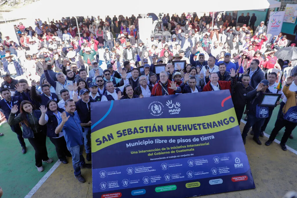 Mano a Mano declara dos nuevos municipios libres de pisos de tierra en Huehuetenango - Huehuetenango, 18 de noviembre de 2025.- Autoridades del Gobierno de Guatemala, encabezadas por el presidente de la República, Bernardo Arévalo,
